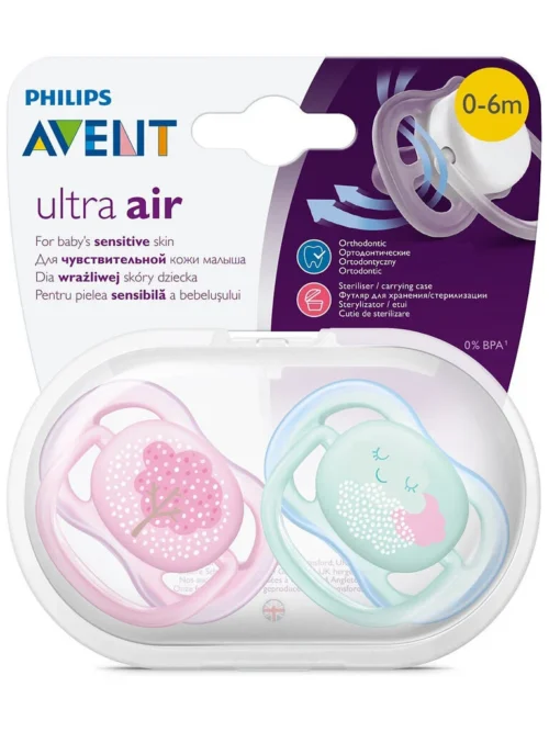 AVENT silikoninis čiulptukas “Ultra Air” mergaitei 0-6 mėn. – ypač švelnus ir minkštas ortodontinis silikoninis čiulptukas.