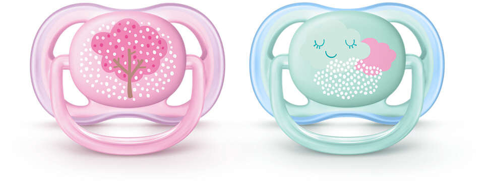 AVENT silikoninis čiulptukas Ultra Air mergaitei (sakura ir debesėliai), 0-6mėn., 2 vnt.