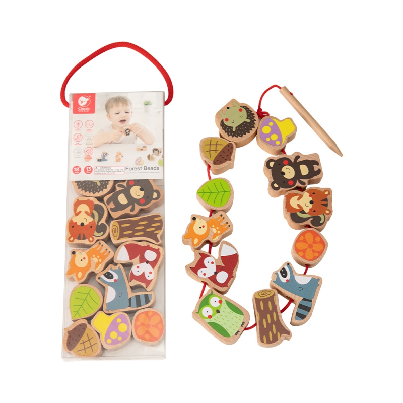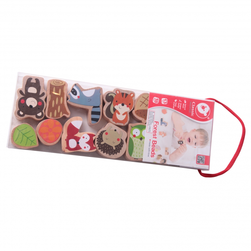 Medinės vėrimo kaladėlės Miško gyvūnai, Classic World (13 el.)