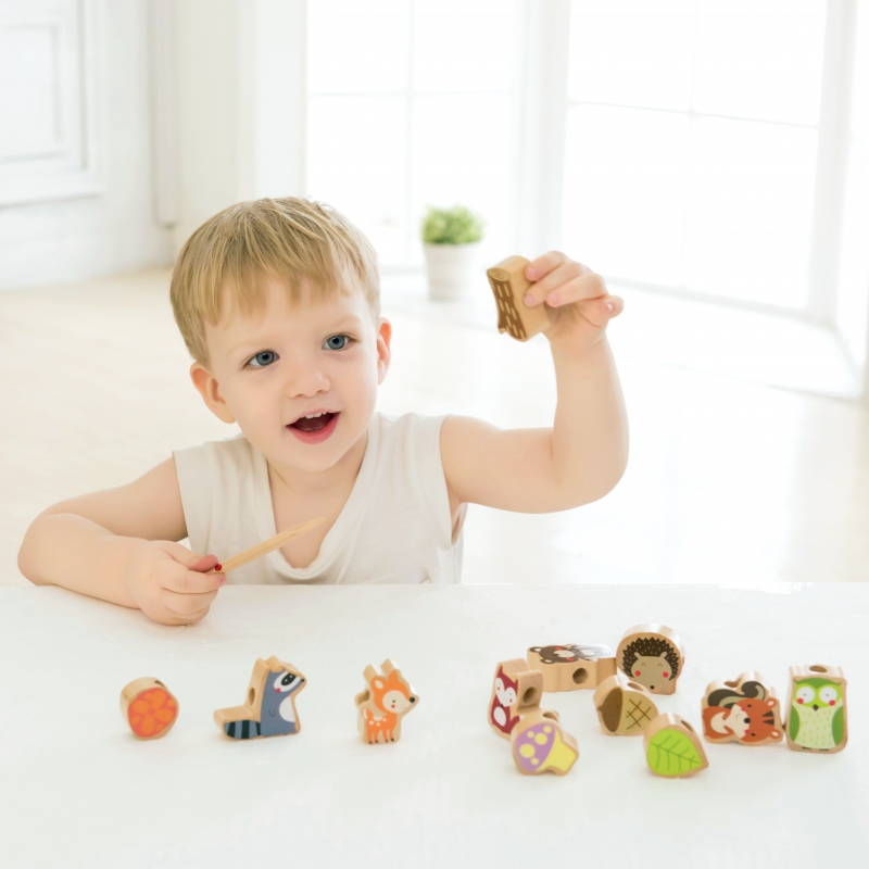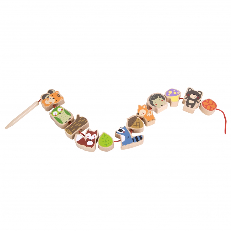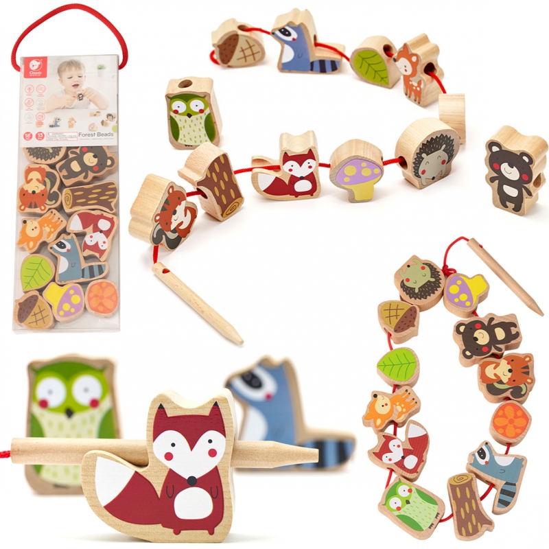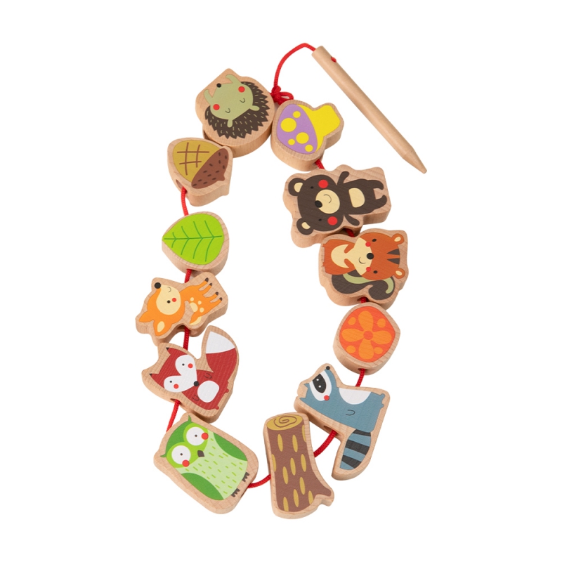 Medinės vėrimo kaladėlės – tai puikus žaislas, padedantis lavinanti vaiko smulkiąją motoriką. Žaisdamas vaikas veria kaladėles tarsi karoliukus – tai suteiks daug smagių akimirkų. Tai puiki priemonė, padedanti lavinanti tikslumą, rankos-akies koordinaciją, smulkiąją motoriką ir žadinanti vaiko smalsumą pažinčiai su miško gyvūnais.